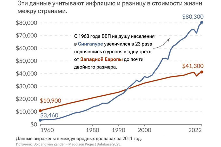 Сингапур по душевому ВВП в 1960-м был беднее церковной мыши, не говоря уже о странах «свободного мира»…