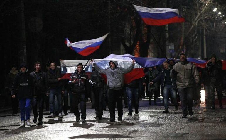Во многих украинских городах прошли митинги и шествия людей под российскими флагами.