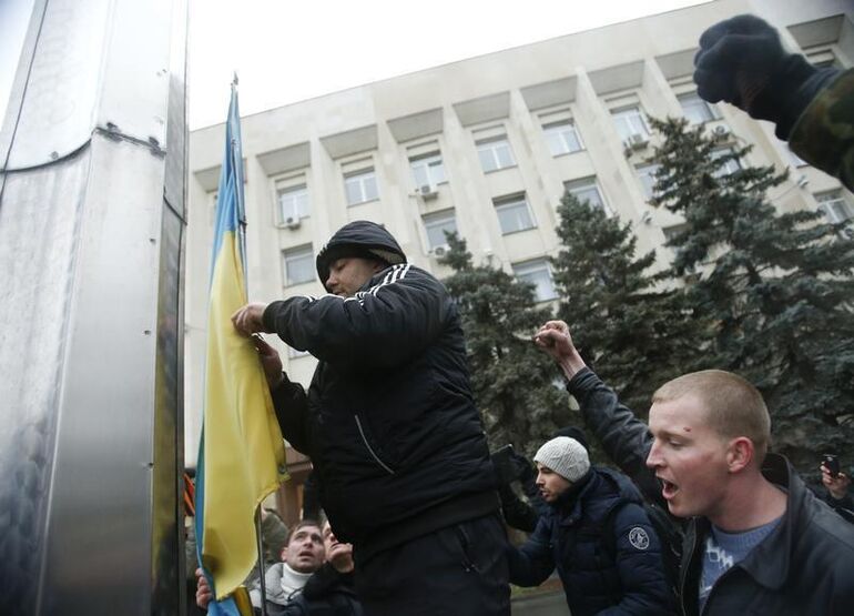А у здания крымского парламента неизвестные активисты сняли жовто-блакитний прапор…