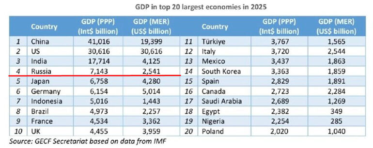Международный валютный фонд (МВФ) подвёл итоги за 2025 год по размерам экономик ВВП по паритету покупательной способности (ППС). ВВП — понятие крайне абстрактное, но в современном мире, где все воюют против всех, — важное. Оно определяет «размер» тыла и возможность содержать армию. У кого больше, тот имеет и больший потенциал. И с этой точки зрения представленные расчёты интересны.