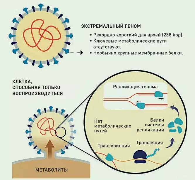 У водорослей динофлагеллятов обнаружился паразит, который растерял практически все гены. ДНК Sukunaarchaeum насчитывает всего 238 тысяч пар оснований — 5% от генома типичной бактерии, что не позволяет этой архее выживать вне организма-хозяина. Она не способна ни к самостоятельному усвоению питательных веществ, ни к синтезу белков и других важных биомолекул, что сближает ее с примитивными вирусами.